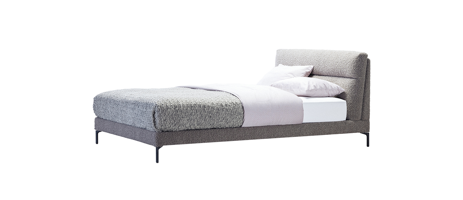 Moderner Lifestyle gepaart mit zurückhaltender Eleganz: Willkommen Cleo. Das Bett von Designerin Hanne Willmann liegt fast schwebend auf dessen filigranen Füßen. Das bequeme und weiche Kopfteil, mit seiner interessanten Quersteppung, ermöglicht ein entspanntes Anlehnen.